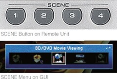 The SCENE PLUS function simplifies operation by providing one touch power-on along with selection of the desired source and the appropriate DSP programmes. SCENE PLUS offers a choice of 12 SCENE selections, four of which can be assigned to the second zone in a multi-zone system. SCENE PLUS can be selected from the front panel, remote control, GUI and even from the AV Controller app.