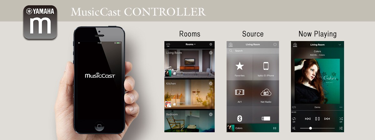 The MusicCast App makes it easy to select and play songs from CDs and USB devices, as well as to select radio stations (FM). In addition, by using the MusicCast Link function, you can send those sources to other MusicCast compatible devices for enjoying them in other rooms.