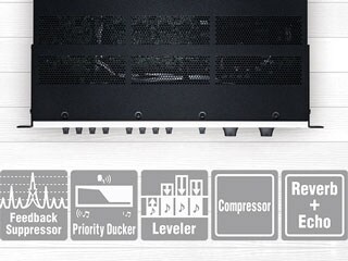 - Funciones DSP avanzadas para reproducción de música y para uso de micrófono (Feedback Suppressor, Priority Ducker, Leveler)