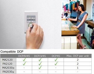 * DCP4V4S, DCP1V4S y DCP4S, hasta dos unidades en total, se pueden conectar al MA2120 y PA2120. Al MA2030a se le puede conectar una unidad DCP1V4S.