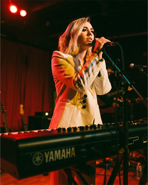 Not only can Maggie sing, but she also plays the piano, drums, guitar, ukulele, mandolin, banjo, bass, and keytar. She even opts to play a right-handed strat with her left hand.