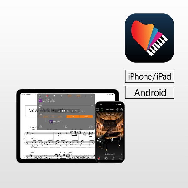 Note Star es una aplicación Yamaha para ipad que proporciona una partitura digital manos libres, de fácil lectura y transición suave sincronizada con pistas de fondos de audio incluso con las voces principales.