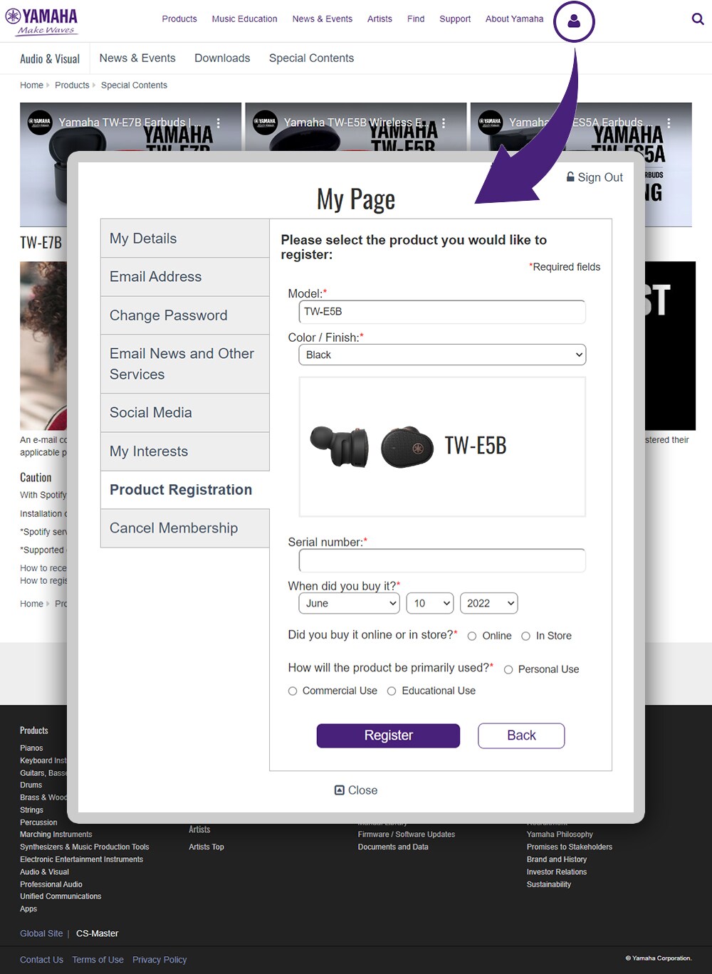 Se enviará un correo electrónico con enlaces al FEEL TRUE SOUND PLAYLIST con auriculares Yamaha, con canciones seleccionadas por los ingenieros de audio de Yamaha, a aquellos que hayan registrado sus productos correspondientes (serie TW). Puedes disfrutar de esta lista de reproducción en Spotify.