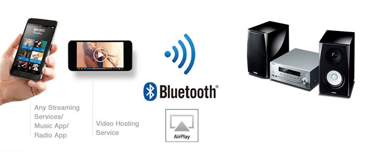 You can hear all the music sources from your smartphone via wireless Bluetooth or AirPlay connection. You can play music from music apps, radio apps, or YouTube™-type video hosting services.