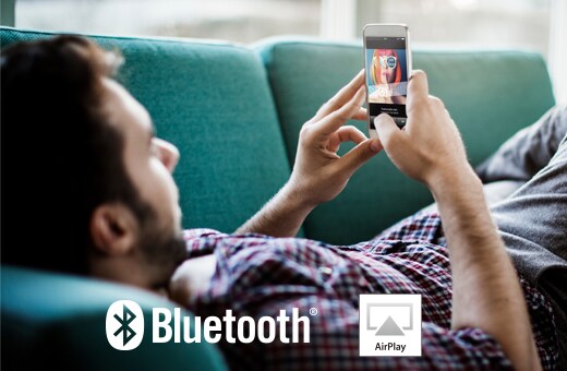 Listen to any and all of your smartphone music sources via wireless Bluetooth® or AirPlay® connection, and enjoy music from your music apps, Internet radio stations, or YouTube™-type video services.