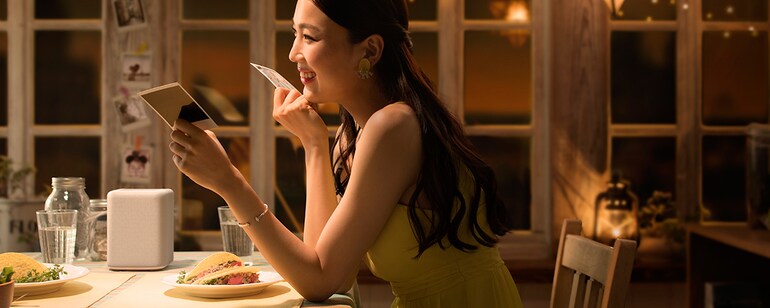 Music. Every day is a lot more fun with it. And the WX-010 lets you easily bring the fun with you — to your bedroom, kitchen, wherever — and enjoy all the music on your smartphone and various streaming services. Anytime, anyplace. The WX-010 makes life more enjoyable.
