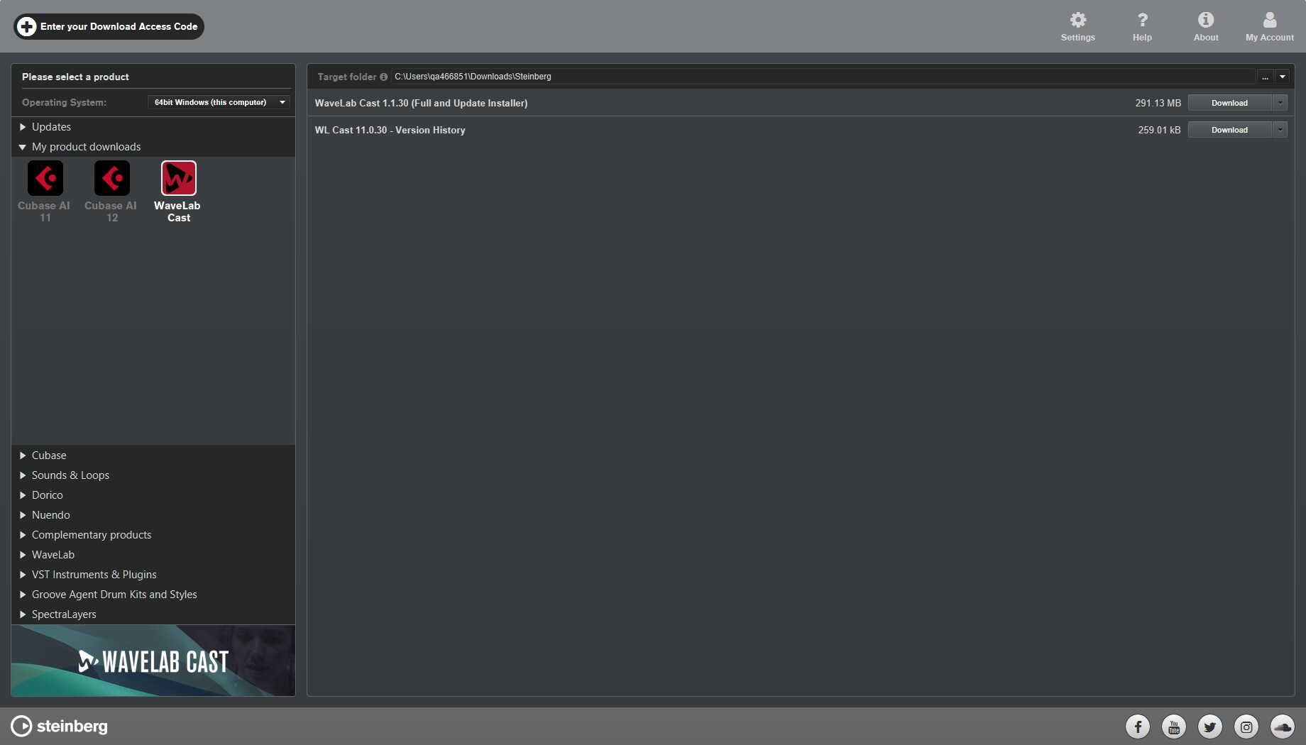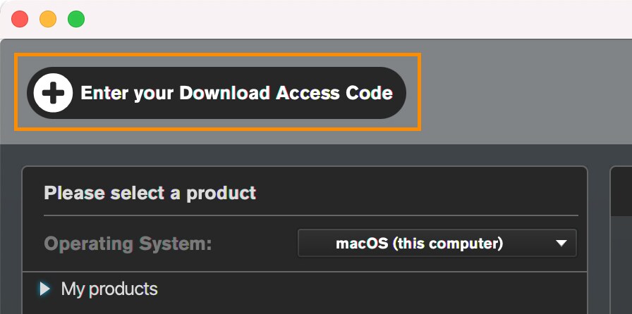 Ingresa tu código de acceso de descarga desde el botón en la parte superior izquierda en Steinberg Download Assistant.