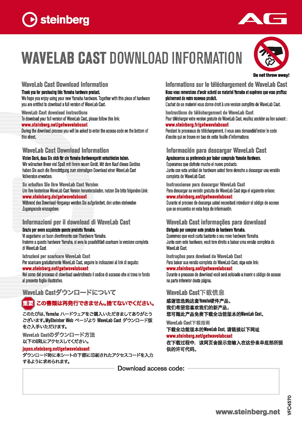 Para descargar y activar Cubase AI y WaveLab Cast, usa Steinberg Download Assistant.