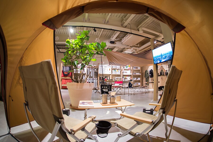 El lema de Snow Peak "también somos usuarios" y su política de empresa de construir a un nivel de rendimiento, no a un precio, podría aplicarse también a Yamaha. Así que no es sorprendente que la compañía haya elegido un sistema de audio de Yamaha para la tienda, con Manabu Shimada seleccionando cuidadosamente los altavoces para ofrecer su banda sonora cuidadosamente diseñada.