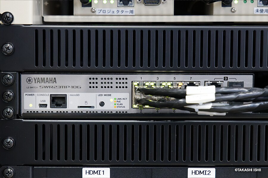 Después de analizar las opciones, se eligió una solución de techo ADECIA de Yamaha que consta de cuatro micrófonos de techo RM-CG, un procesador de señal MRX7-D y un conmutador L2 SWR2311P-10G habilitado para PoE.