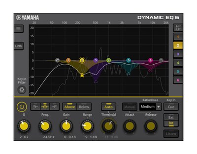 El Dynamic EQ6 es un ecualizador dinámico de seis bandas, que incluye un amplio conjunto de funciones; combina ganancia estática con control de rango dinámico y agrega filtros de paso alto/paso bajo a las características de los complementos anteriores del Dynamic EQ de Yamaha.