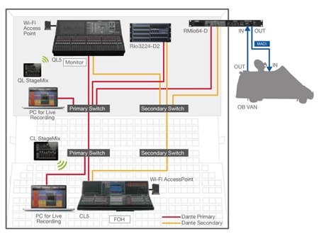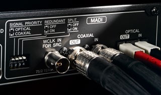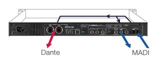 Además de la redundancia de la red Dante, se pueden hacer conexiones MADI redundantes mediante cables ópticos y coaxiales, de modo que si la señal de entrada primaria se interrumpe, el sistema se conmuta automáticamente a la conexión secundaria. Los cables ópticos son ideales para la transmisión a larga distancia.