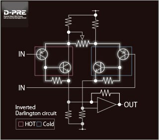 - Preamplificadores de micrófono "D-PRE" con un circuito Darlington invertido