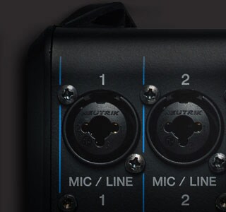 Las salidas estéreo principales cuentan con conectores XLR con bloqueo para evitar desconexiones accidentales. Resistentes y fiables, estos conectores profesionales garantizan una transmisión estable de la señal, incluso bajo las condiciones más exigentes.
