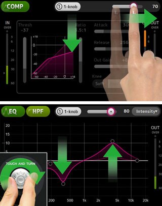 1-knob COMP™ y 1-knob EQ™: un solo botón para conseguir el sonido ideal