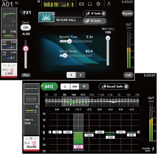 El hardware de la serie TF está lleno de funciones que contribuyen a que la operatividad y la comodidad sean máximas. Todos los faders, controles giratorios y botones tienen un tacto y un ajuste sobresalientes, además de una total integración de funcionamiento con la tecnología visual de última generación, incluyendo la alta visibilidad del nombre y el color de los canales. El propio panel táctil ofrece una mezcla perfecta entre información visual completa y rapidez de respuesta. La disposición física de estos componentes aúna todo en un sistema con un flujo de trabajo sorprendentemente eficiente.