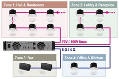 Las aplicaciones de sonido instaladas a menudo exigen una conectividad de alta y baja impedancia en el mismo recinto, lo que requiere amplificadores separados y dedicados o un transformador externo. Los amplificadores de potencia XMV, sin embargo, pueden funcionar tanto en modo de alta impedancia (línea de 70V/100V) como de baja impedancia (4Ω/8Ω) simultáneamente, lo que elimina la necesidad de equipos adicionales, además de agilizar el proceso de instalación. Los amplificadores de potencia XMV también permiten el funcionamiento tanto a 70 V como a 100 V para cada par de canales con sólo seleccionar el modo preferido mediante los interruptores DIP del panel posterior. El funcionamiento a alta impedancia suele requerir el uso de dos canales combinados en modo puente, pero con los amplificadores XMV, se puede asignar el modo de 70 V o 100 V a cada par de canales sin que ello afecte al número de canales de salida disponibles.
