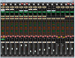 The Overview display offers a convenient view of the mix parameters for 16 channels or mix buses at a time. In Version 3 Sends on Fader functionality is also available via the editor's Overview display.
