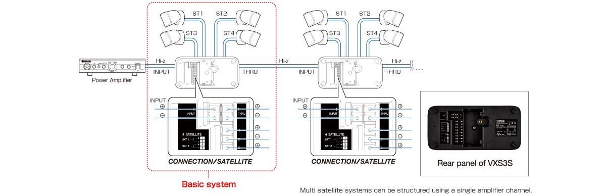 Este es un sistema que conectó VXS3S con alta impedancia y construyó múltiples satélites. Puede cambiar fácilmente el volumen requerido cambiando el número W de salida tocando.