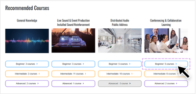 In the Product Courses section, courses are organized into categories that focus on individual product series. Simply select a course to jump to the training page.