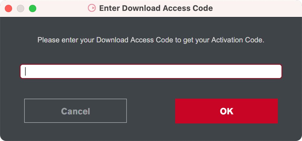 Ingresa tu código de acceso de descarga desde el botón en la parte superior izquierda en Steinberg Download Assistant.