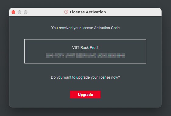 Una vez que hayas ingresado el código, obtendrás el código de activación de la licencia para VST Rack Pro 2.