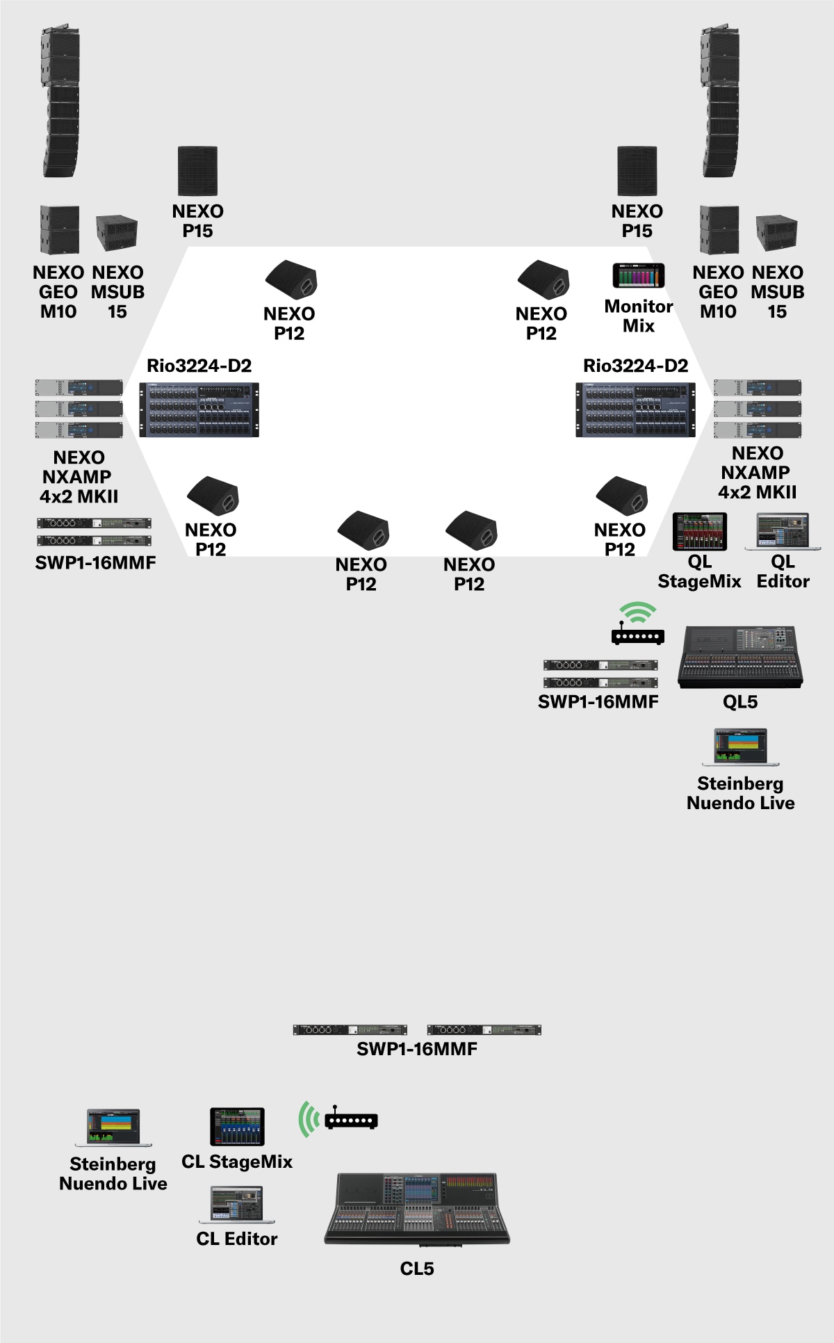 Debido a su tamaño compacto, funcionamiento flexible y calidad de sonido superior, la consola de mezclas insignia RIVAGE PM de Yamaha se ha convertido en un refuerzo estándar de la industria del sonido en vivo, ganando el reconocimiento internacional de algunos de los artistas más populares que están de gira en la actualidad. Los sistemas de altavoces line array STM de NEXO actúan como el complemento perfecto, apoyando de manera flexible al RIVAGE PM como una solución potente y escalable que se puede adaptar para satisfacer las demandas de varios lugares en vivo y brindar una experiencia sonora memorable para todos los asistentes.