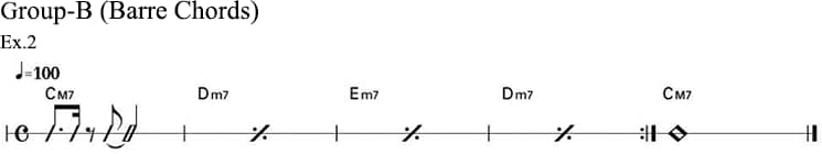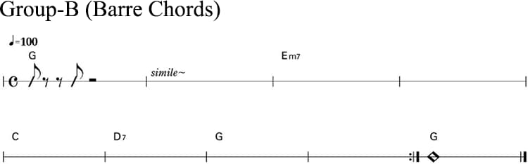 El alumno preparará tres riffs, de los cuales tocará uno, el cual será seleccionado por el examinador.