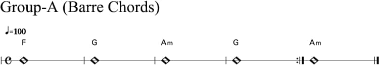 3. Candidate plays the riff pattern with the backing track from the beginning to the end.