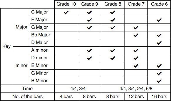 - Las pistas de acompañamiento se prepararán en el lugar del examen por parte de la academia y/o los maestros.