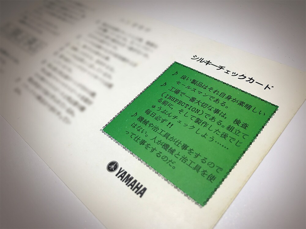 Durante sus visitas a Japón, Schilke realizaba controles elaborados para asegurarse de que los instrumentos se estuvieran produciendo de acuerdo con sus instrucciones. Estos controles eran estrictos e intransigentes. Con el fin de implementar a fondo el consejo de Schilke en la planta de producción, Kawasaki y los demás crearon tarjetas de control Schilke de bolsillo, que incluían puntos detallados para cada paso del proceso de producción. Los supervisores de piso llevaban estas tarjetas en todo momento en un esfuerzo serio por producir una artesanía superior que satisfaciera la estricta demanda de calidad de Schilke. Después de un año de recibir asistencia de Schilke, la compañía exhibió las trompetas Yamaha por primera vez en una feria de instrumentos musicales en Chicago, impactando el enorme mercado estadounidense.