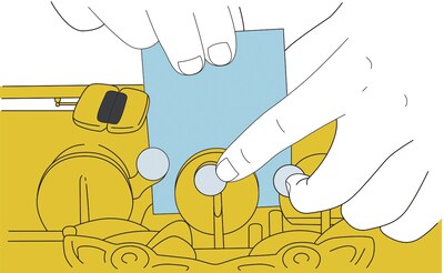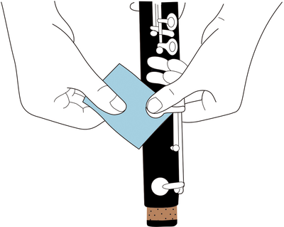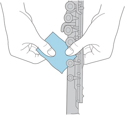 Coloque el papel de limpieza entre la almohadilla y el orificio de tono, luego cierre suavemente la llave varias veces.