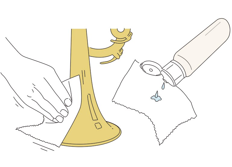 Aplicar una pequeña cantidad sobre una gasa de pulir o un paño de pulir.