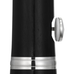 La clavija se adhiere al instrumento en un ángulo, por lo que es fácil sostener el clarinete solo con la clavija y el pulgar de la mano derecha.