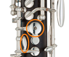 Se ha incluido llave de resonancia de Si para mejorar el sonido del Si grave. Si se desea, se puede desenganchar la llave mediante el tornillo de ajuste, pero el mecanismo está diseñado para que la llave de resonancia siempre se abra al tocar el Si bemol más grave.