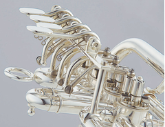 The YTR-988 is a custom rotary piccolo trumpet that provides stable playability in addition to proper resistance and accurate intonation. The instrument can convert from the key of Bb to the key of A simply by switching the leadpipe.