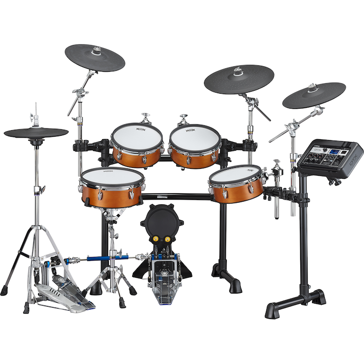 - La tecnología original de Yamaha de parches TCS se utiliza para la tarola y los toms para lograr una sensación y un rebote naturales que te dan ganas de seguir tocando.