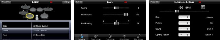 Enables access to previously unavailable parameters such as pad tuning, cymbal and hi-hat size. Access the Tempo and Metronome settings with a single touch.