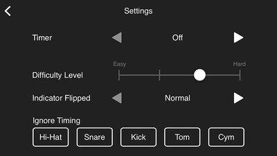 Puede también seleccionar kits personalizados, número de canciones, ajustar el metrónomo y los parametros de los activadores (triggers) a su estilo con un simple deslice del dedo. Puede ver esta información mientras toca en el Modo de práctica y aprender a tocar canciones preestablecidas con videos instructivos con profesionales de la industria.