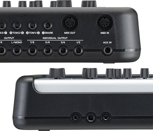 El DTX-PROX está equipado con 8 SALIDAS INDIVIDUALES y una matriz que permite dirigir las señales a cualquier salida. Las dos tomas AUX IN son ideales para recibir sonido de los monitores de un sistema de PA, conectar a otros instrumentos musicales (lado trasero) o conectar a dispositivos inteligentes (lado frontal). La DTX-PROX tiene una salida de auriculares estándar y una salida de mini jack, lo que permite un enrutamiento altamente flexible, como enviar clics y sonidos de AUX IN solo a los auriculares.