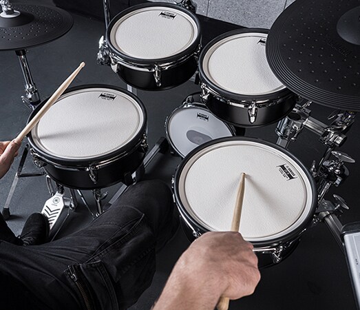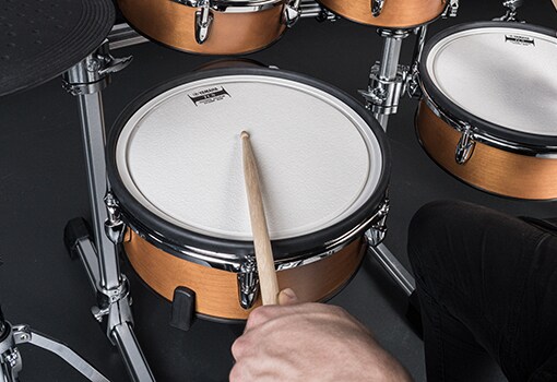 La tarola y los toms cuentan con una sensación muy cercana a sus respectivas contrapartes acústicas. Sus superficies nunca se aflojarán, no importa cuántas veces sean golpeadas, manteniendo la mejor sensación posible en todo momento.