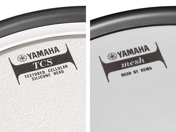 La superficie Yamaha TCS (Silicona Celular Texturizada) utilizan un material de silicona en espuma que contiene numerosas burbujas de aire, que les dan una firmeza y un rebote precisos. Las burbujas de aire en el interior sirven como un cojín, suavizan el sonido del impacto y reducen la tensión en muñecas y codos. La superficie de golpe es igual a la de un parche texturizado, y evita que las baquetas se deslicen.