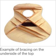 Pieces of wood called harmonic bars are placed on the inside of the top of the guitar. The placement of these harmonic bars varies by manufacturer and instrument, and is referred to as the "bracing" of the instrument.