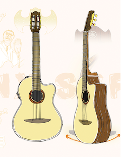 La forma del mástil es idéntica a la de las guitarras clásicas. El diapasón mide 52mm a la altura de la cejilla y 62mm en la unión.