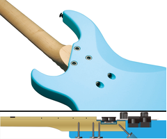 El atornillado en ángulo fija el cuello más cerca y más apretado al cuerpo, y así fusiona estos dos componentes separados como uno solo. En comparación con una unión convencional atornillada, el atornillado en ángulo transfiere eficientemente la vibración de las cuerdas a lo largo del cuerpo con poca pérdida. Esto proporciona una mayor resonancia en el cuerpo, haciendo que cada nota cobre vida.