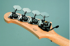 El afinador Hipshot baja la cuerda "MI" un tono entero a "Re" con el movimiento de una palanca. Un ajuste de engranaje proporciona afinación precisa.