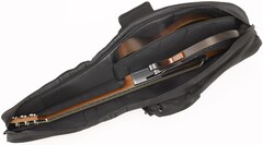 La lujosa funda para guitarra proporcionada se puede llevar con facilidad y cabe en el compartimento de equipaje de un avión con espacio de sobra.