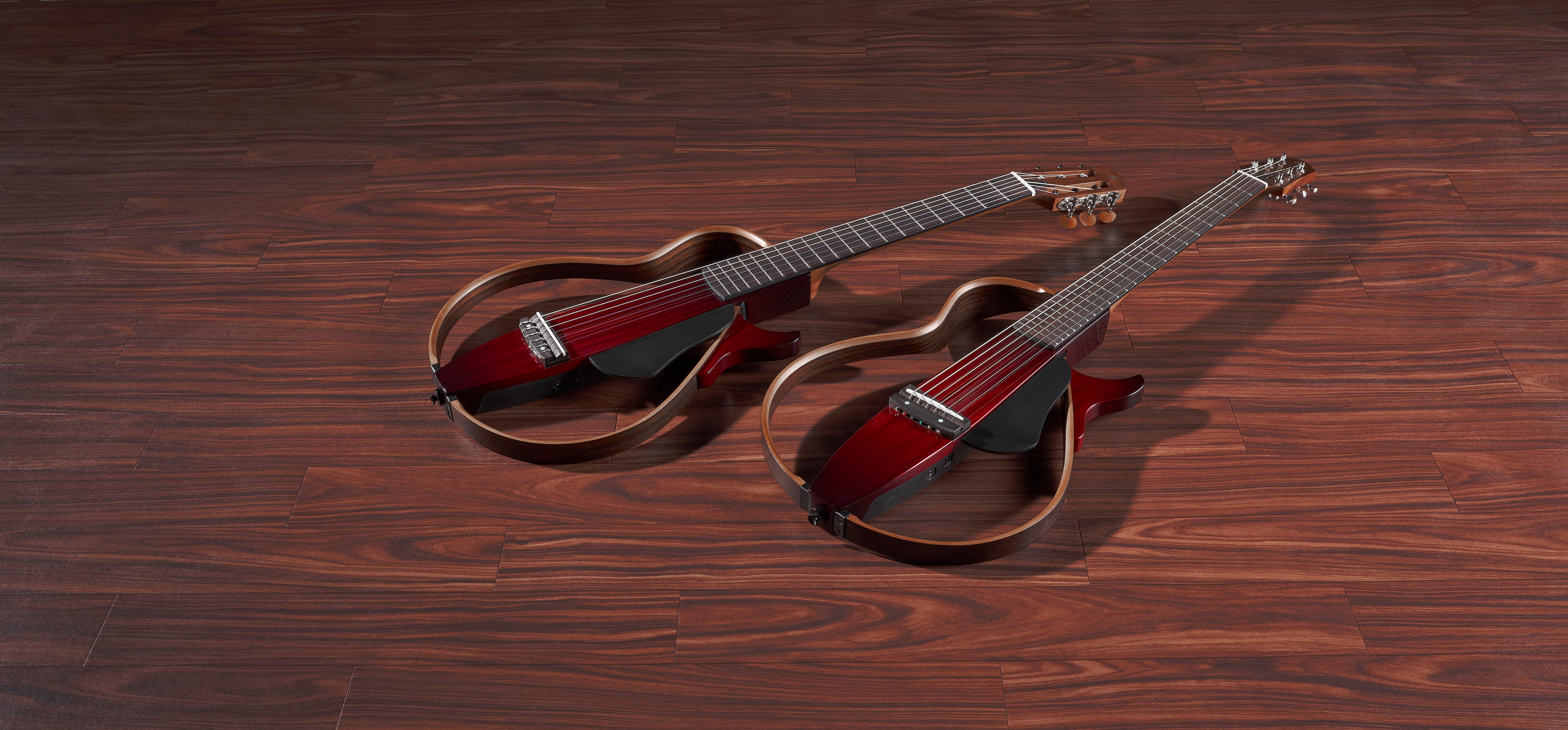 La guitarra SILENT de cuerdas de nylon SLG200N siempre ha sido un instrumento ideal para practicar, viajar y actuar, y el nuevo acabado Crimson Red Burst añade una estética atrevida y moderna.