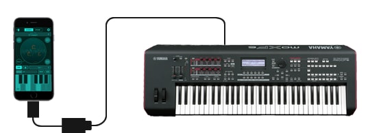 When connected to the Yamaha MOXF Music Production Synthesizer (OS version 1.10) using the Lightning to USB Camera Adapter by Apple, the MOXF becomes the MIDI/Audio interface for the iOS app creating a very powerful music production system.