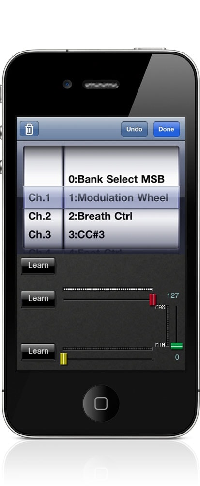 4 sliders each with up to 3 control change parameters can be assigned for each of 50 templates. This application offers unique new ways for sonically tweaking the synthesizer.